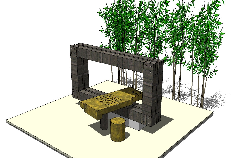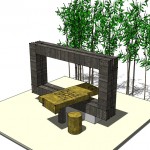 將長者的童年記憶,融合原木、燒陶、小石的元素,