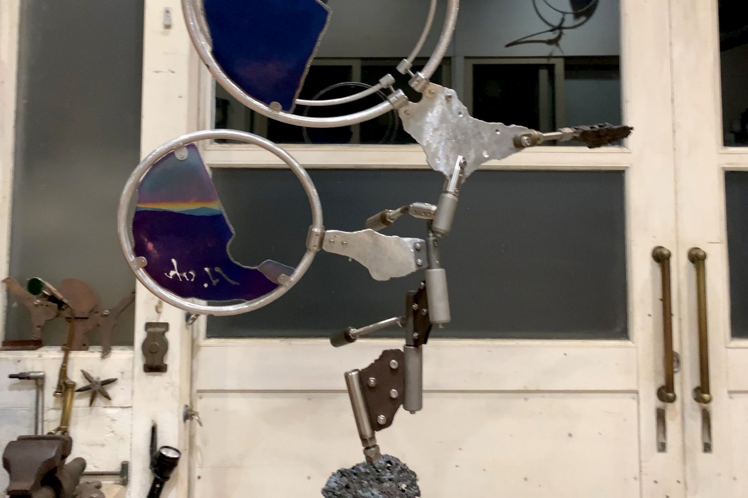雕塑創(chuàng)作,以金屬切割、拼貼,
