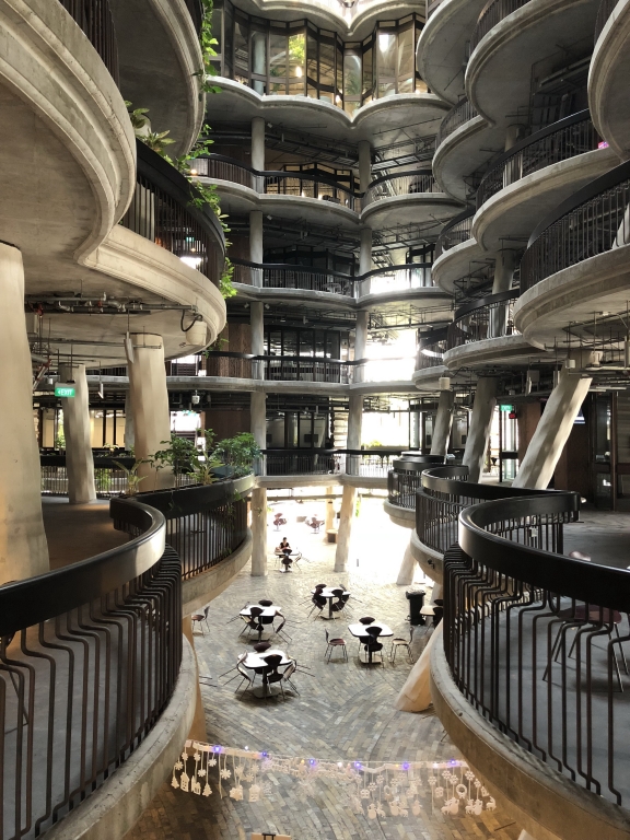 一棟風(fēng)能自由流動的建築,也一定會讓緊繃的神經(jīng)放鬆下來。這座佔地約2 平方公里的學(xué)校,也許無法靠「量」取勝,但其中的「綠質(zhì)量」,卻讓其成為新加坡首屈一指的大型開放空間。1993 年,由日本建築師-丹下健三 接手重新規(guī)劃了其校園整體配置,親切地保留扮演「綠肺」要角的室內(nèi)山谷,高通風(fēng)與採光的特性,使得這棟建築幾乎能自體呼吸,同時飾以盎然綠意,堪稱讓師生休養(yǎng)生息的有機體。