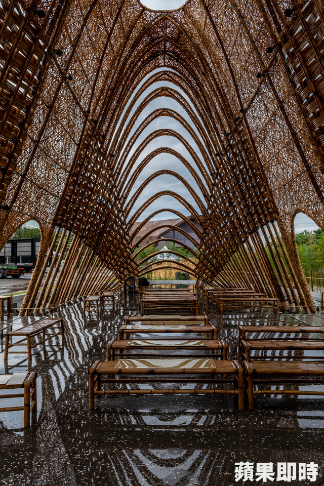 臺(tái)中花博即將在11月3日開(kāi)幕,裡頭的6大企業(yè)館也逐步落成,其中臺(tái)中不動(dòng)產(chǎn)開(kāi)發(fā)公會(huì)承攬的企業(yè)管「竹跡」,卻顯得很「不建商」,主結(jié)構(gòu)不是鋼筋混凝土或鋼構(gòu),而是純竹構(gòu)、竹編搭建,成為一座高聳的山形竹涼亭,搭配磨石子地板、燈光計(jì)畫(huà),已成為場(chǎng)內(nèi)明顯亮點(diǎn)。