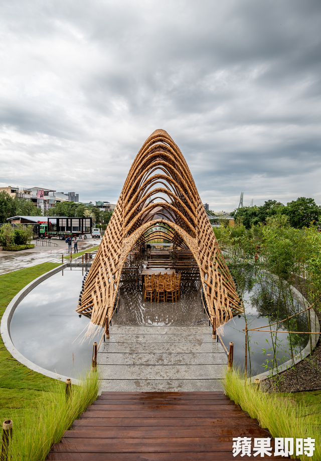 最大的挑戰(zhàn)就是竹構(gòu)部分,公會(huì)指出,國(guó)內(nèi)無(wú)竹材建築規(guī)範(fàn),光是要找到適合的竹子就很難,如何克服它易乾裂的特性,並將多根竹子組合成一支柱子,吊裝、加工方法等,都是在此案摸索出來(lái),整體設(shè)計(jì)則由陳羿沖規(guī)劃,竹編藝術(shù)則與竹籟文創(chuàng)合作。