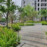人行道使用透水磚,讓土壤保水,