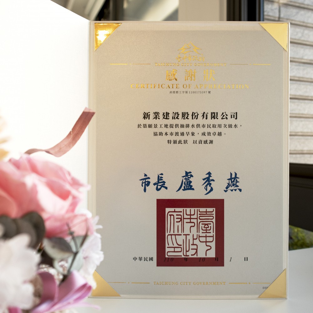 於年末,臺中市府特頒感謝狀,