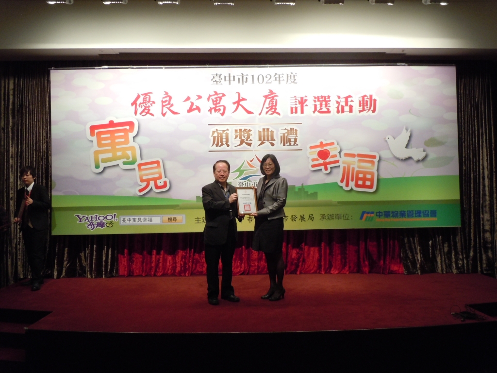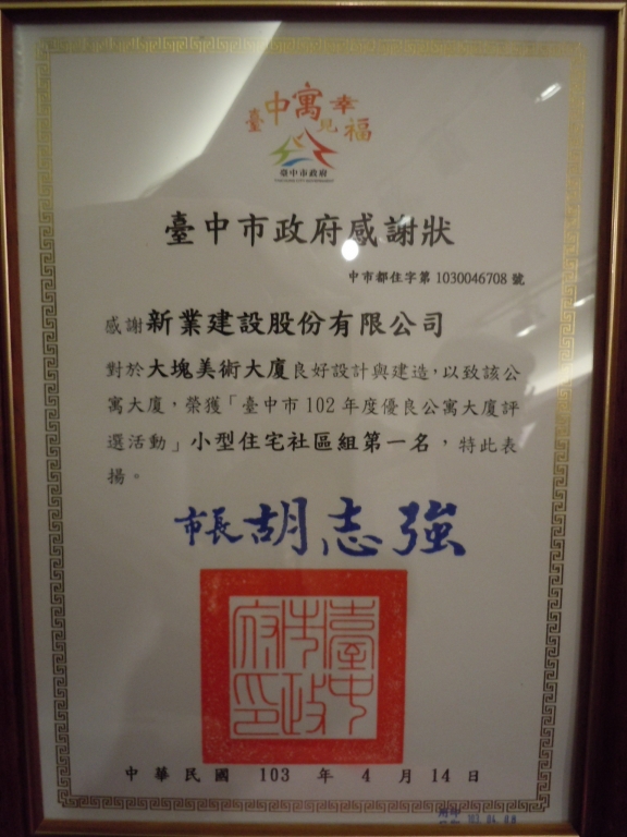 【大塊美術(shù)】榮獲臺中市102年度優(yōu)良公寓大廈評選二項(xiàng)大獎