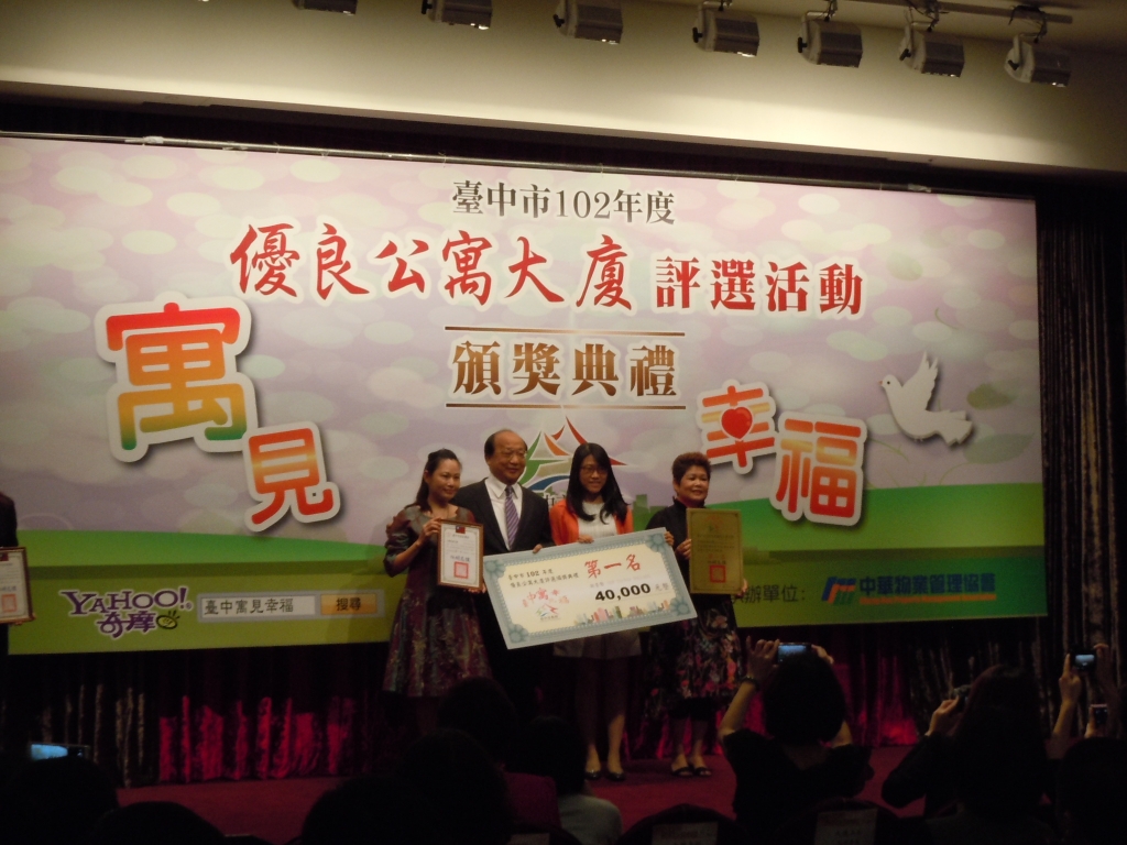 【大塊美術(shù)】榮獲臺中市102年度優(yōu)良公寓大廈評選『小型住宅社區(qū)組第一名』、『組織經(jīng)營特色獎』等二項(xiàng)大獎